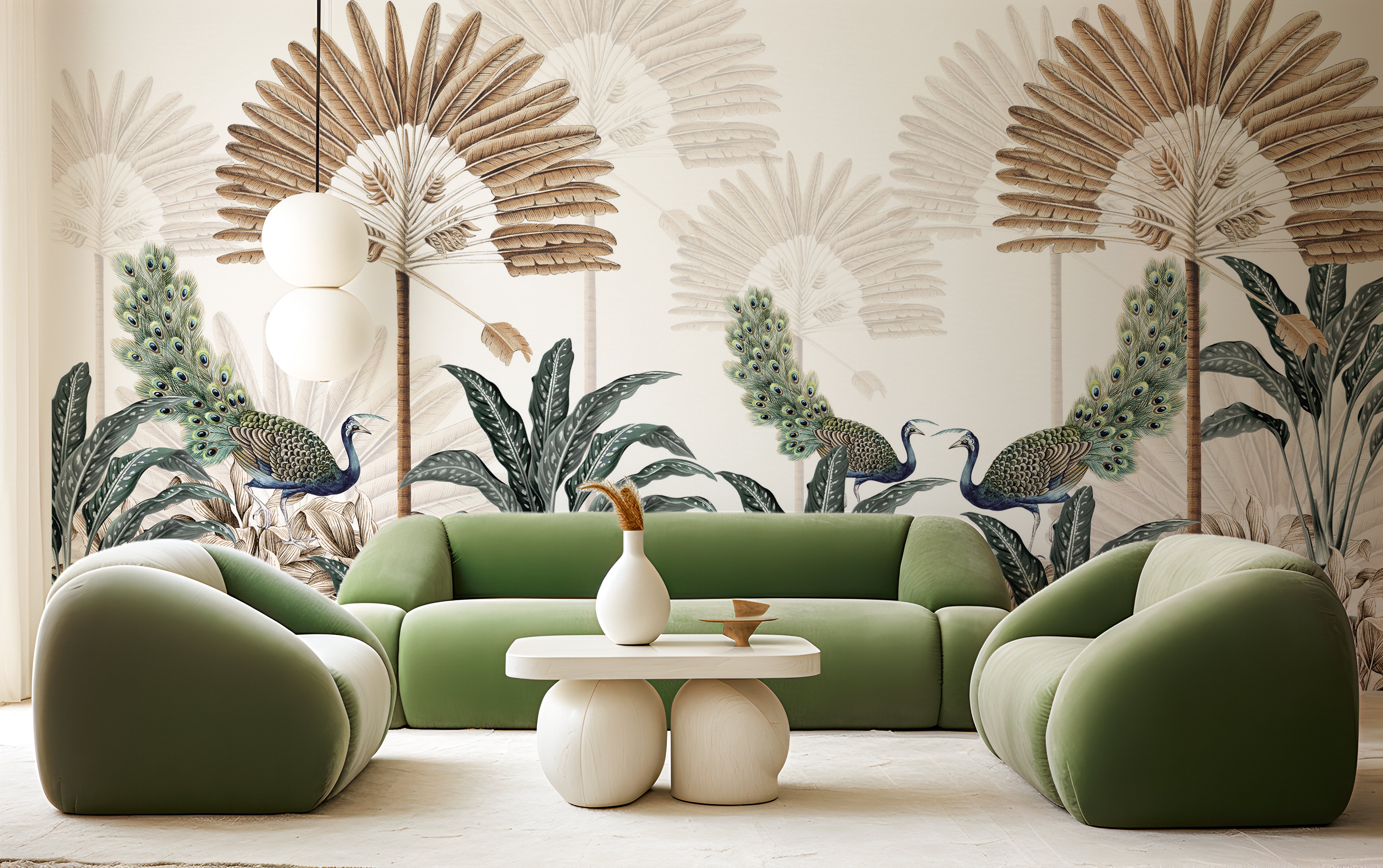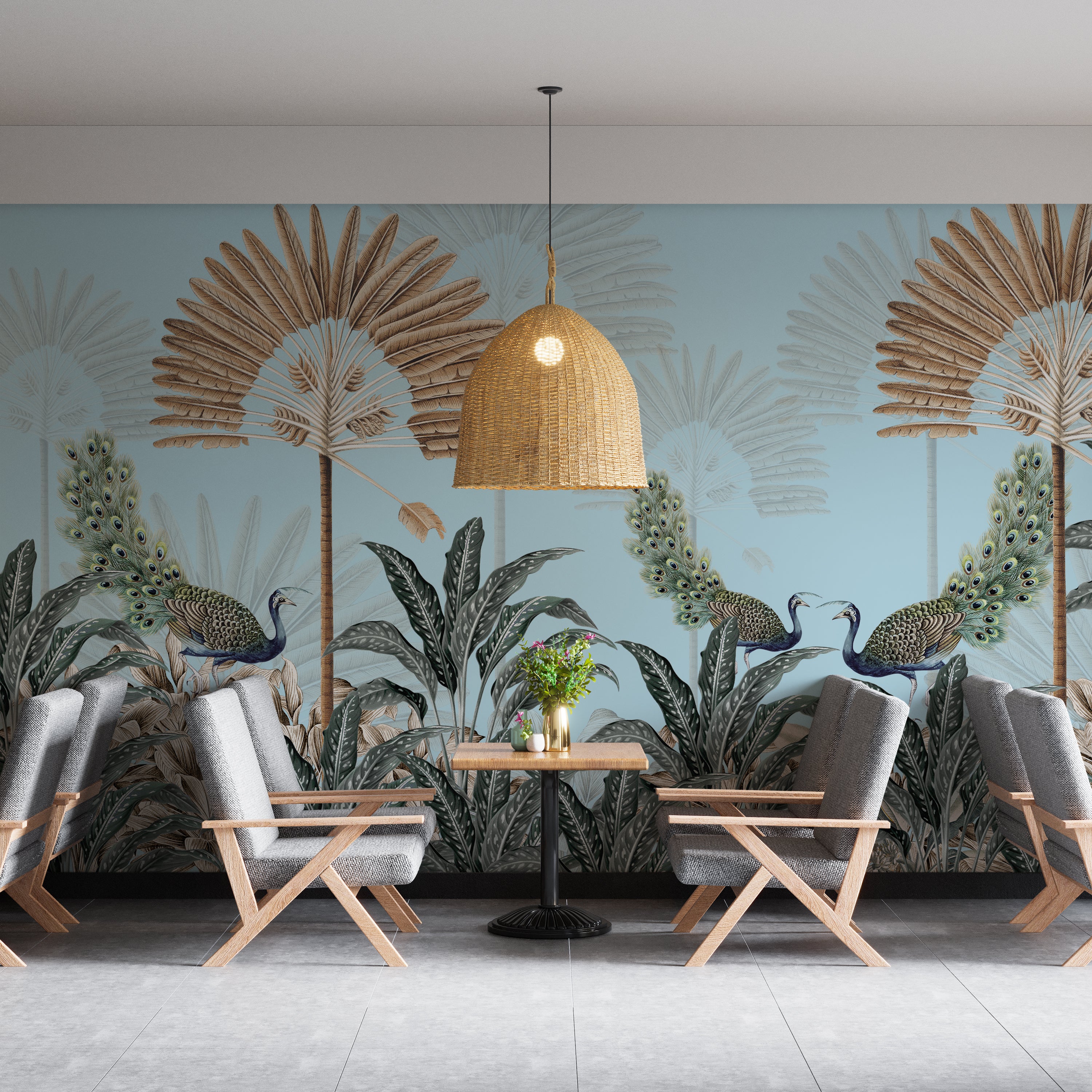 Immerse yourself in the lush beauty of the tropics with the Vintage Peacock Jungle WIV-806 wall mural. Featuring a majestic peacock surrounded by rich, tropical foliage, this exquisite design brings a touch of luxury, nature, and vintage charm to any space. Whether you're decorating a living room, bedroom, office, or boutique, this mural is the perfect statement piece to elevate your interior.