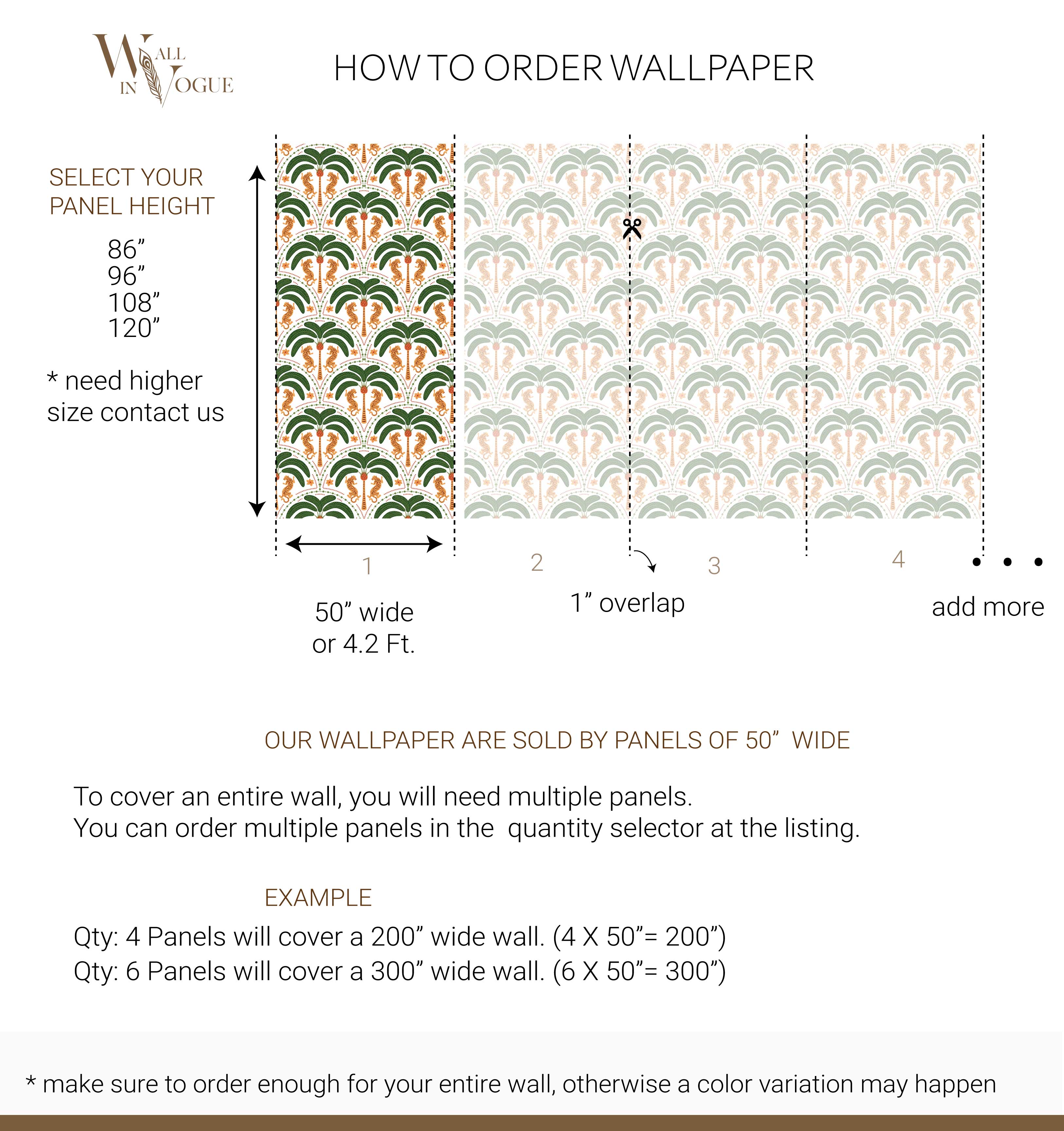 Please order all wallpaper panels required for the project at once!-Always think of adding a little extra for safety margin.