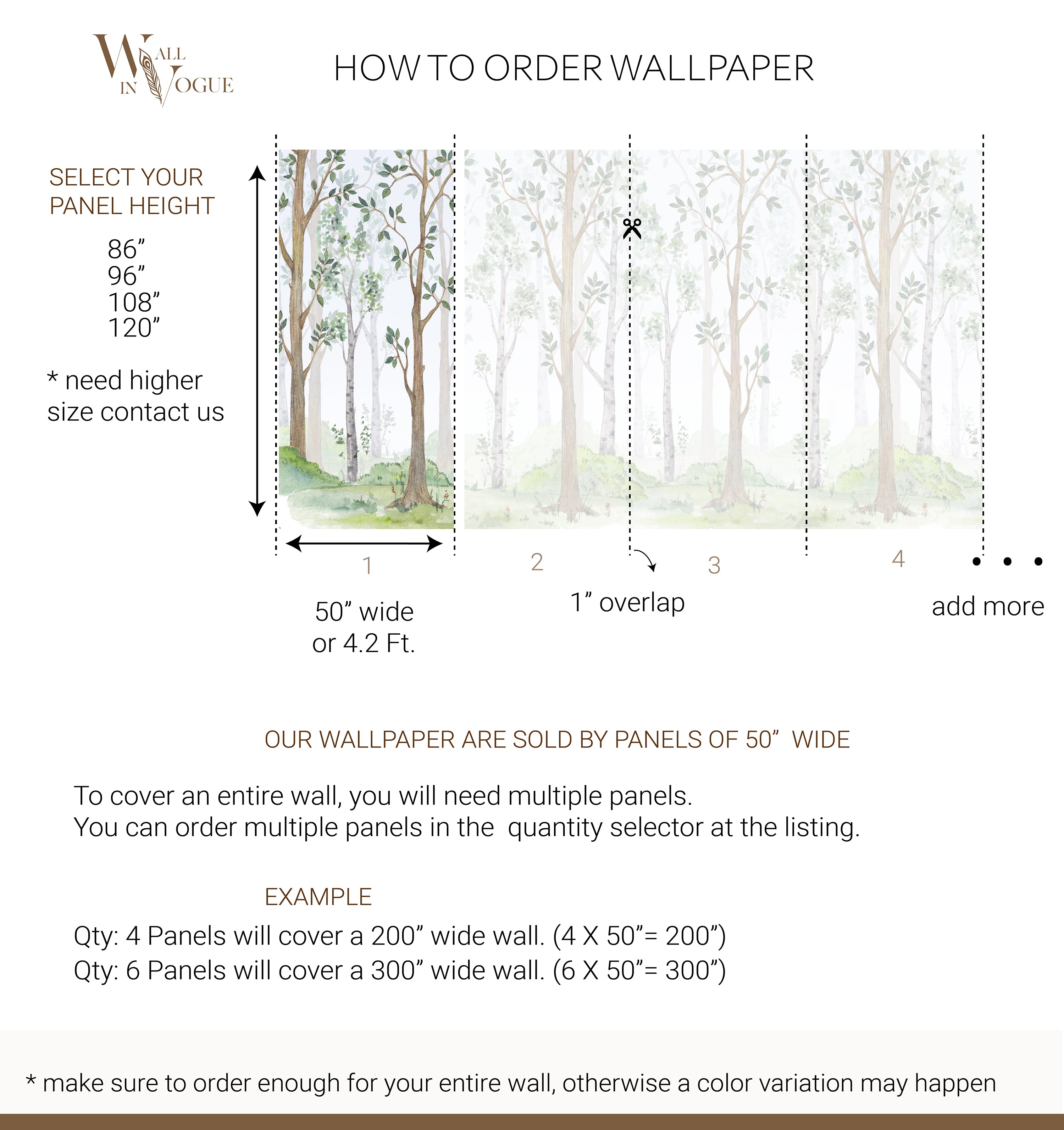 Please order all wallpaper panels required for the project at once!-Always think of adding a little extra for safety margin.